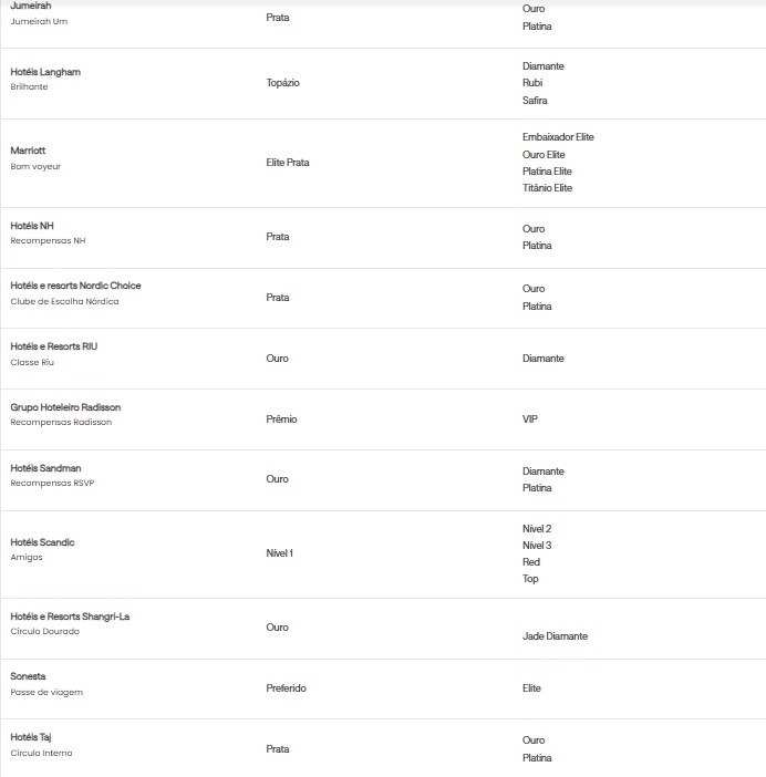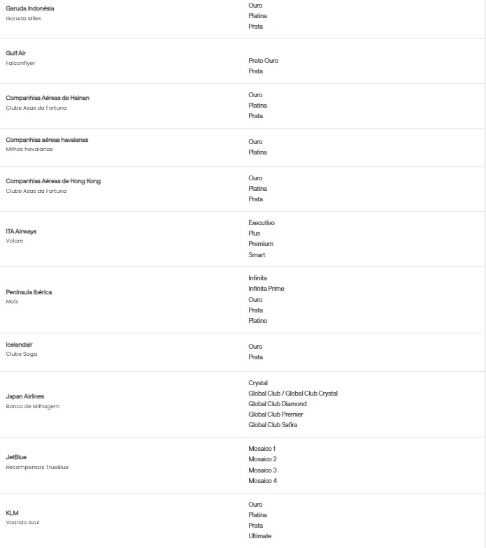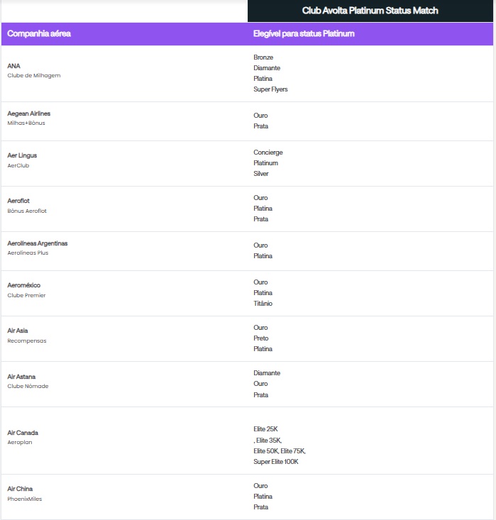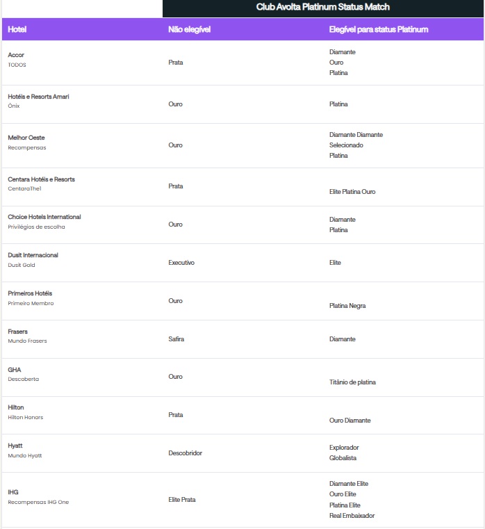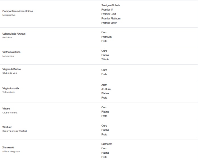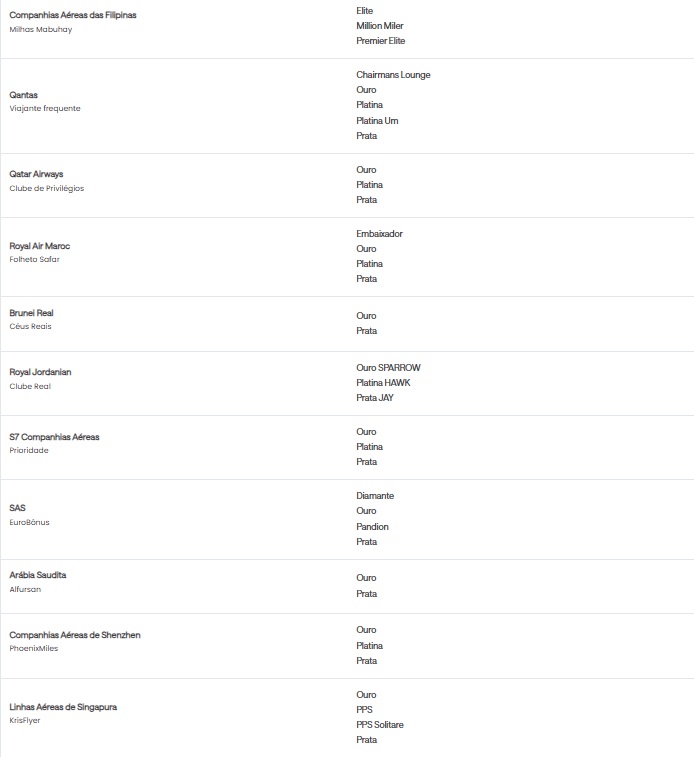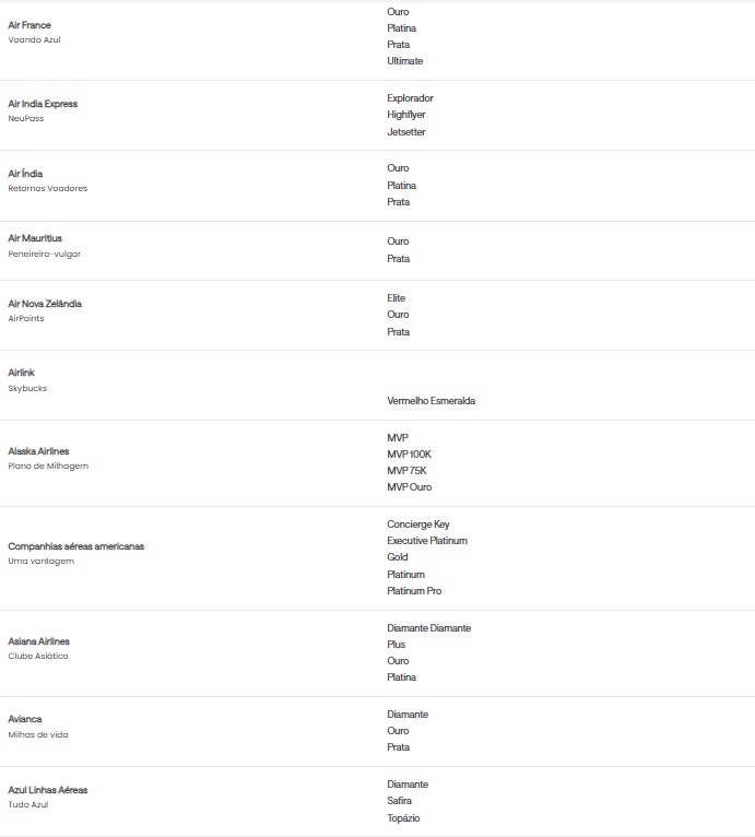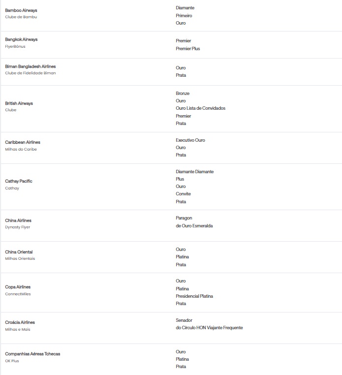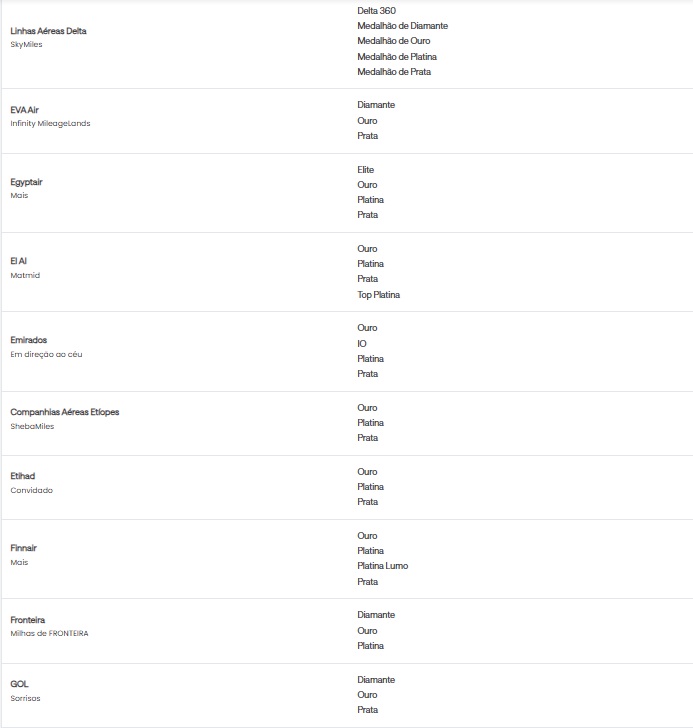 • Quem tem direito à oferta Status Match?Todos os clientes que possuem status elite elegível em uma companhia aérea ou em redes hoteleiras selecionadas podem ser elegíveis.