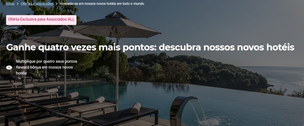3. Esta oferta permite aos associados ALL, independentemente de seu status, multiplicar por 4 seu ganho de pontos Reward por uma hospedagem em um dos hotéis participantes do programa de fidelidade ALL.