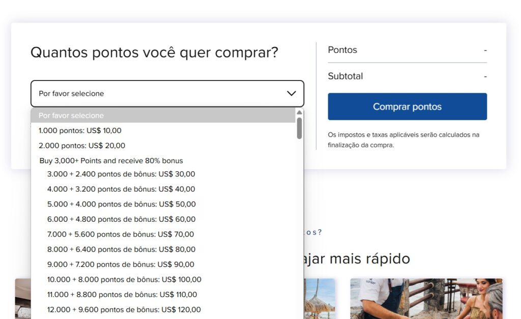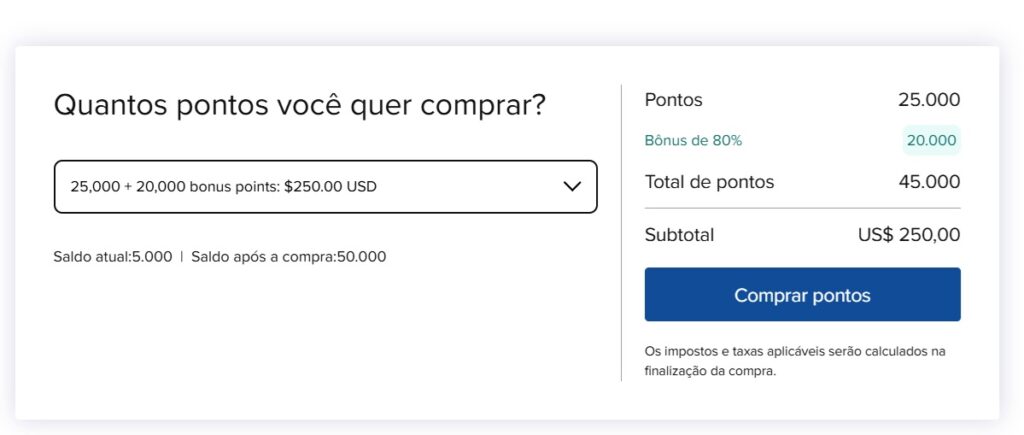 Todas as compras devem ser feitas pela página de Compras no HiltonHonors.com . A campanha de bônus de 80% de Pontos está disponível para compras de 3.000 ou mais Pontos feitas entre 10 de junho de 2025, às 00:00 ET e 24 de julho de 2025, às 23:59 ET.