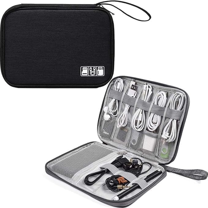 - Produto: Bolsa impermeável e universal para organizar cabos, carregadores e pequenos acessórios de viagem.