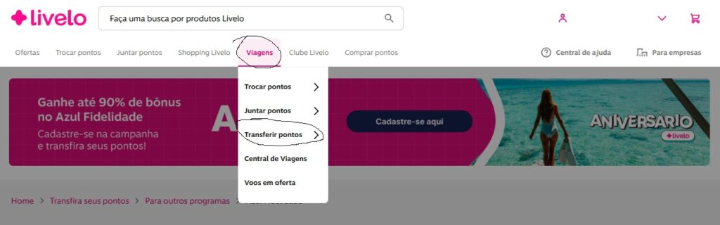 - Oferece transferência imediata gratuita para assinantes do Clube Livelo.