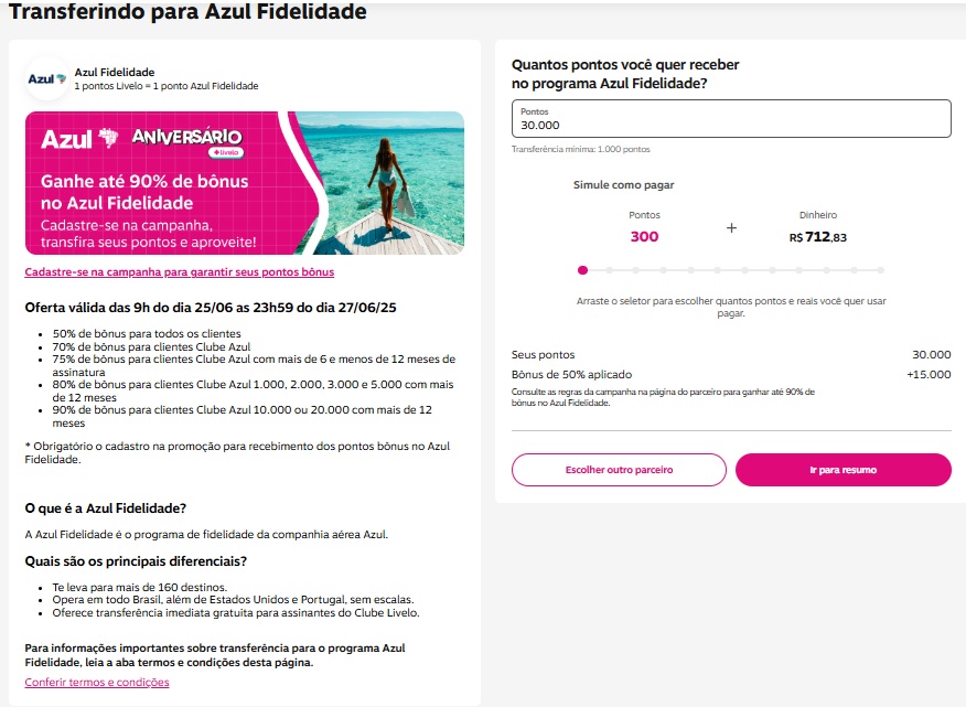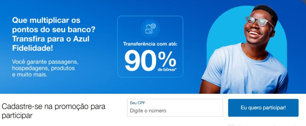 Para informações importantes sobre transferência para o programa Azul Fidelidade, leia a aba termos e condições desta página.