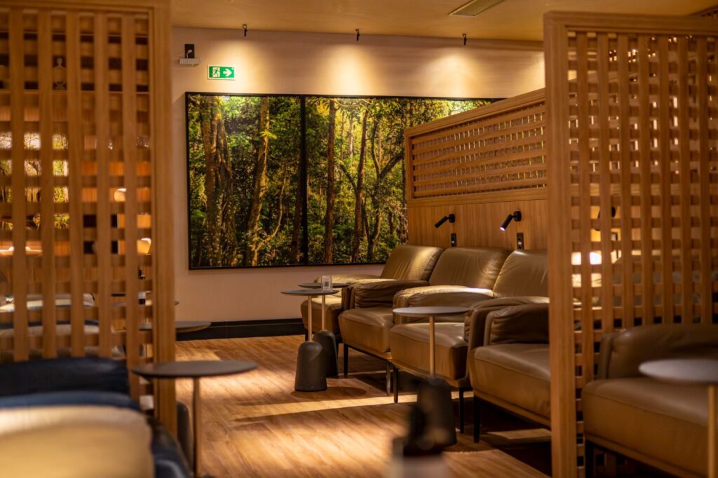 O lounge internacional está localizado no Embarque B, ao final do corredor, e foi cuidadosamente projetado para proporcionar o máximo de conforto e comodidade aos viajantes. Conta ainda com diversas facilidades, incluindo banheiros com duchas privativas, Wi-Fi em alta velocidade e ilimitado, variedade de drinks e bebidas, snacks de qualidade à vontade, e uma sala de reunião equipada, ideal para quem precisa de um espaço privativo para trabalhar ou realizar encontros.