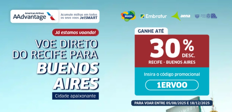 O voo inaugural da companhia aérea ultra low-cost foi a rota direta entre Recife (REC) e Buenos Aires (EZE). Essa é uma aposta da JetSMART para fortalecer a conexão entre o Nordeste brasileiro e a capital argentina, impulsionando o turismo e oferecendo mais opções de voos de baixo custo.