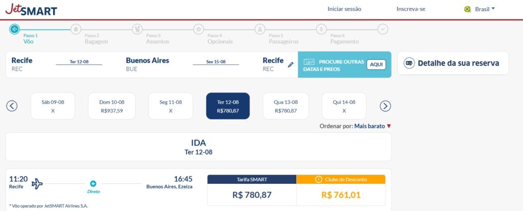 - Destino: Buenos Aires (Aeroporto de Ezeiza – EZE).