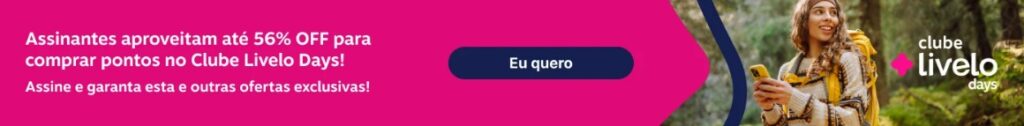• Desconto Máximo: 56% de desconto para assinantes dos planos Clube Livelo Mega ou Top.