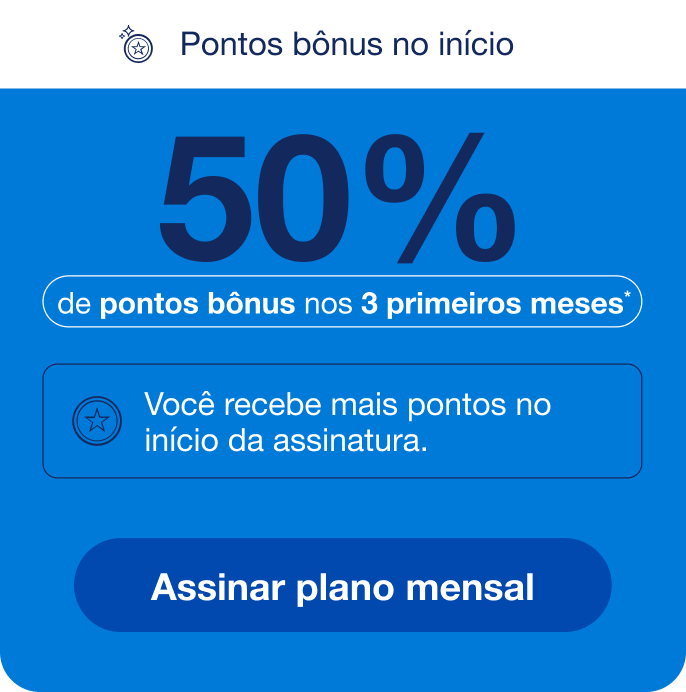 13. O participante que optar pela adesão ao Plano 5.000 Mensal com 30% de desconto nos 3 primeiros meses receberá 5.000 pontos referente ao plano. O valor da mensalidade do Plano Mensal 5.000 será de R$ 130,90 nos 3 primeiros meses. Após a 3° mensalidade o valor do plano passará a ser cobrado integralmente no valor de R$187,00.