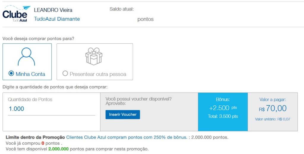 Compra de Pontos – Clientes Azul compram pontos com até 250% de Bônus