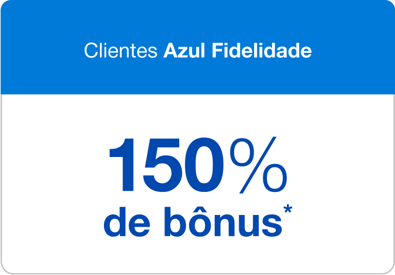 4. Para ser elegível a 250% de bônus os clientes do Clube Azul devem estar com sua assinatura ativa no momento da compra. Caso a adesão ao Clube Azul ocorra durante o período promocional é necessário aguardar a efetivação do plano (que poderá levar até 24 horas) para que o Bônus sob a compra de pontos seja de 250%.