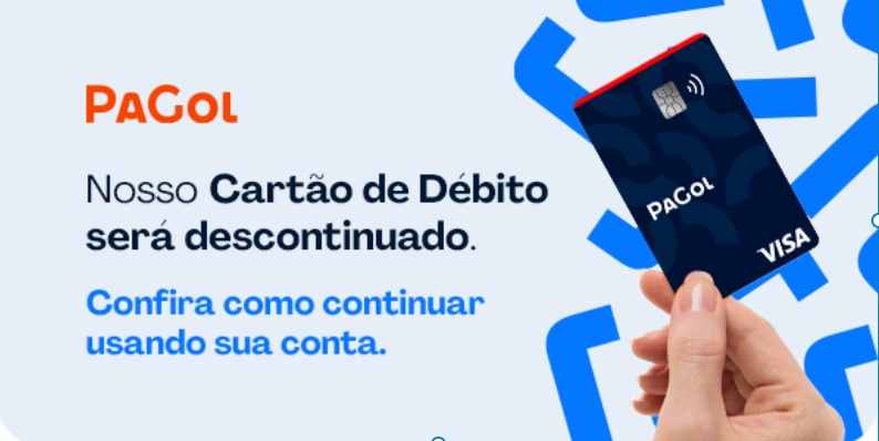 Queremos informar que, a partir de 01 de setembro de 2025, o Cartão de Débito PaGol (físico e virtual) será desativado como parte da reestruturação do nosso portifólio de produtos. Por isso, novos cartões não estão sendo emitidos.