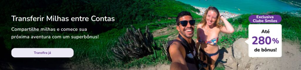 Com o Clube Smiles, cada transferência abre portas para novos destinos. Ao enviar milhas para outra conta Smiles, você ganha até 280% de milhas bônus na transferência, de acordo com seu plano de assinatura!