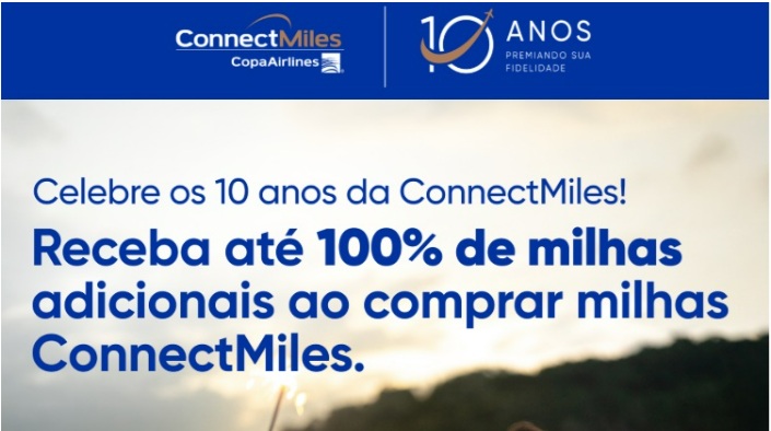 10 anos de ConnectMiles! Compre milhas ConnectMiles até 31 de julho e receba até 100% de bônus.