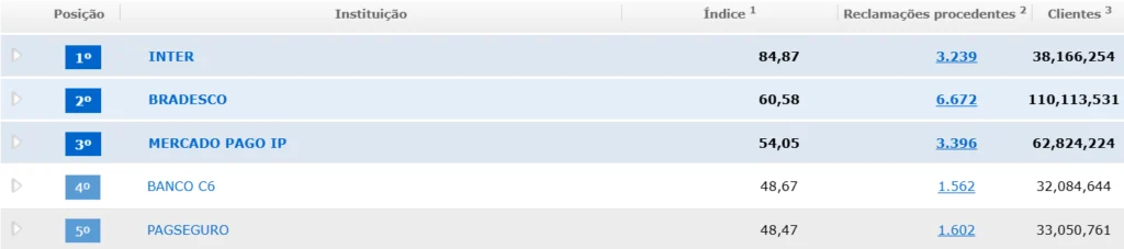- Banco Inter lidera o ranking geral.