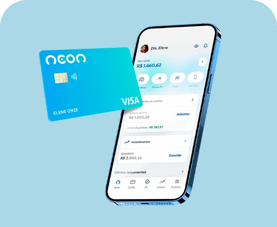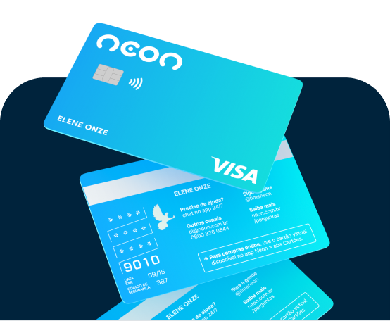 Ao abrir uma conta digital na Neon, você tem acesso ao cartão. É importante entender que ele geralmente vem nas funções débito e crédito (o crédito está sujeito a aprovação de análise). A bandeira Visa garante aceitação ampla no Brasil e no exterior.