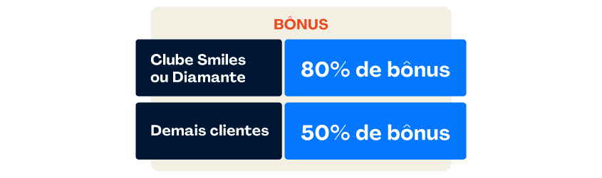 - Para garantir o maior bônus na oferta o cliente precisa ser Assinante Clube Smiles ou Diamante antes de realizar a compra.