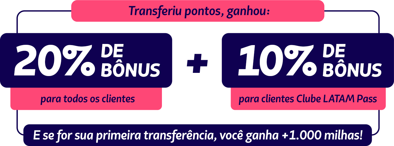Transfira seus pontos do seu banco e ganhe 20% de bônus no LATAM Pass.