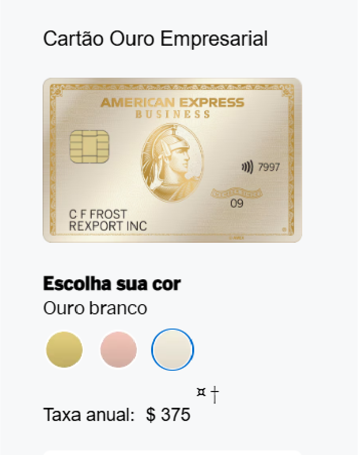 Nesta nova fase, o American Express oferece três opções de design para o cartão Business Gold: