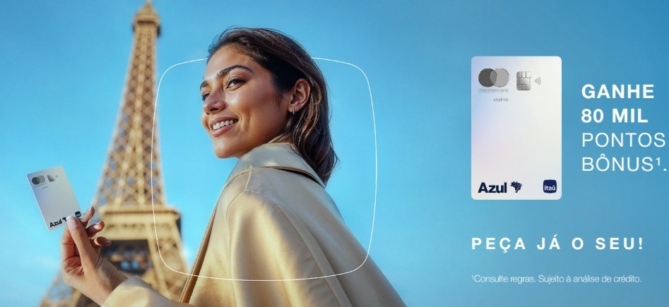 Ótima Notícia! Contrate o cartão Azul Itaú Mastercard Skyline entre os dias 04/08 e 24/08 e ganhe 80 mil pontos bônus