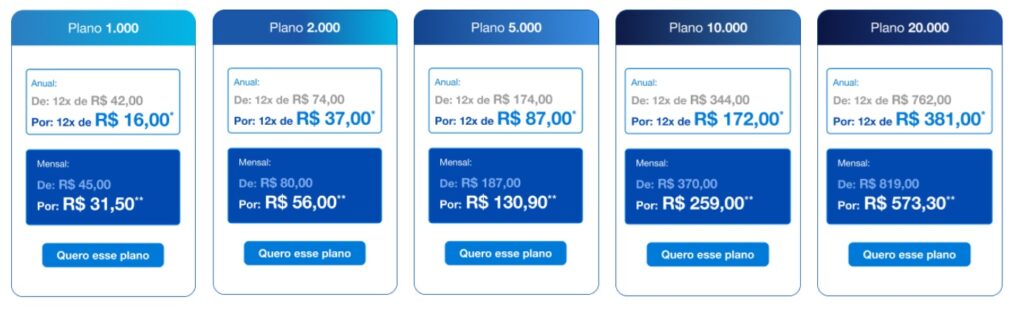 3. O participante que optar pela adesão ao Plano 1.000 Mensal receberá 1.000 pontos referente ao plano. O valor da mensalidade do Plano Mensal 1.000 será de R$ 31,50 nos 3 primeiros meses. Após a 3° mensalidade o valor do plano passará a ser cobrado integralmente no valor de R$45,00.