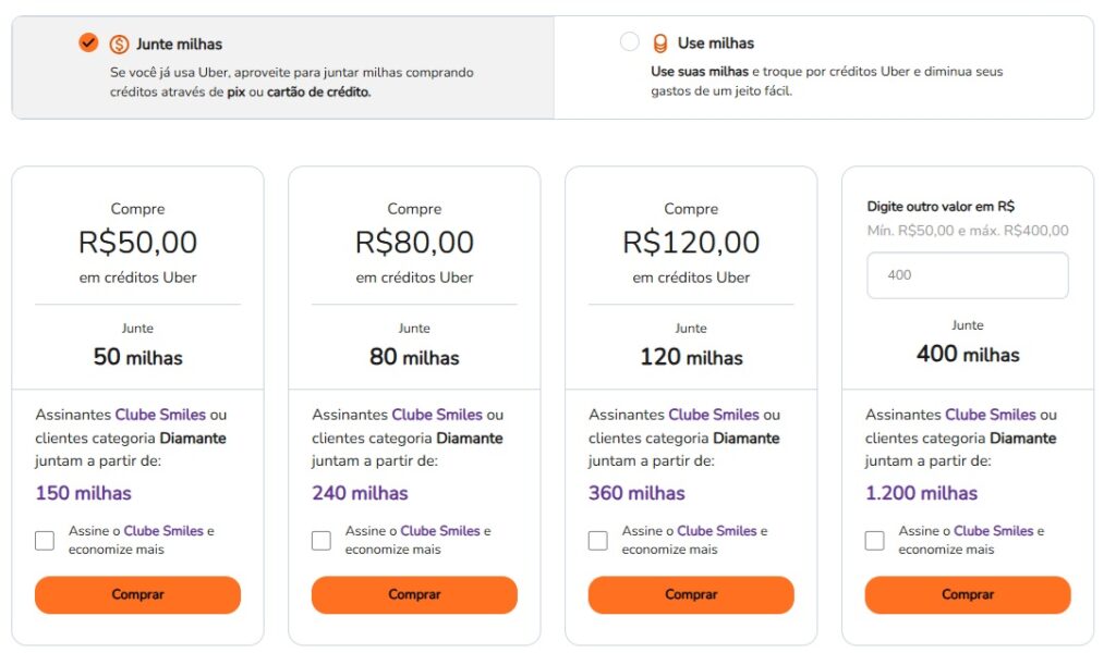 Selecione Junte Milhas ou Use Milhas
