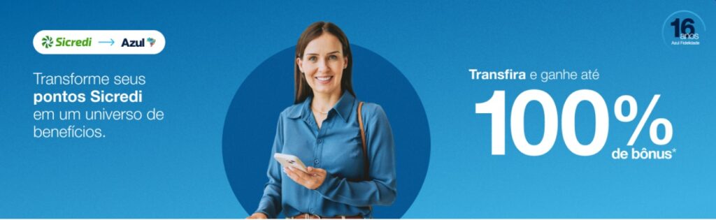 2. Para garantir o bônus, o cliente deve possuir cadastro no programa de fidelidade da Azul, com a conta em situação regular e também cadastrar seu CPF no link da promoção https://www.voeazul.com.br/br/pt/ofertas/sicredi antes de realizar a transferência.