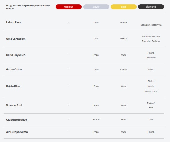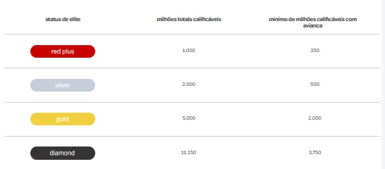 | Benefícios de status + benefícios elite recebidos por adelantado | vermelho mais | prata | ouro | diamante |