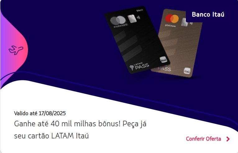 Compre passagens aéreas LATAM Airlines em até 10x sem juros pagando com o cartão Latam Pass Itaú.