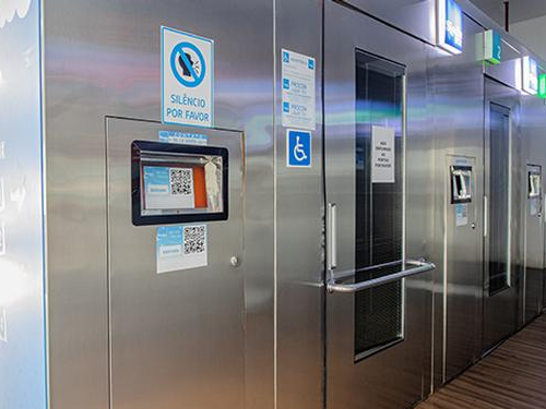 Lado ar – Área de desembarque doméstico, 2º andar. O camarote Siesta Box fica a aproximadamente 30 metros do balcão de conexão da Azul Linhas Aéreas. Somente desembarque doméstico.