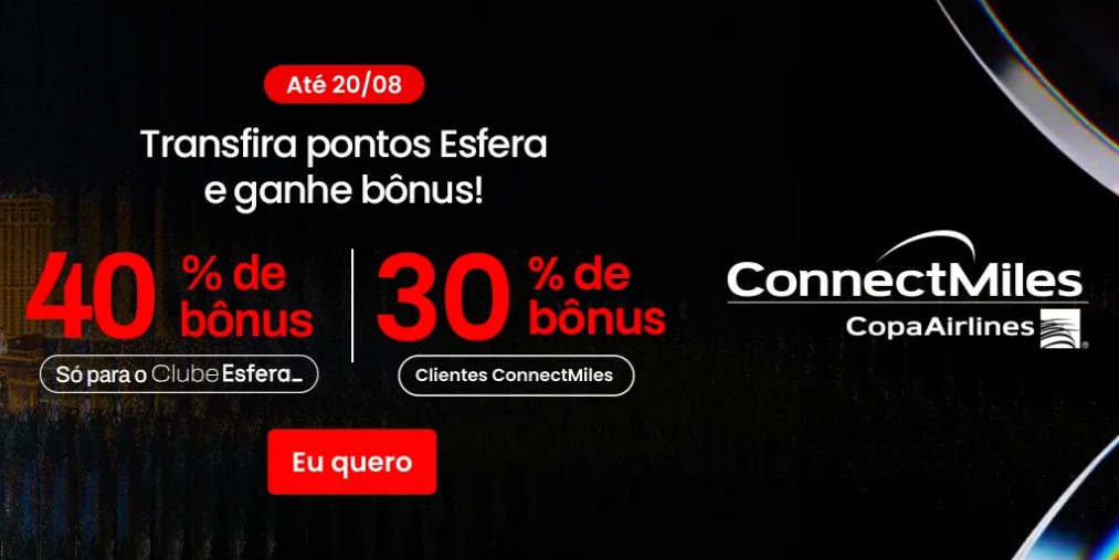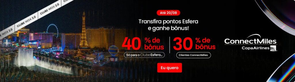 ·  Clientes ConnectMiles com Clube Esfera receberão mais 10% (dez por cento) de Milhas Bônus.