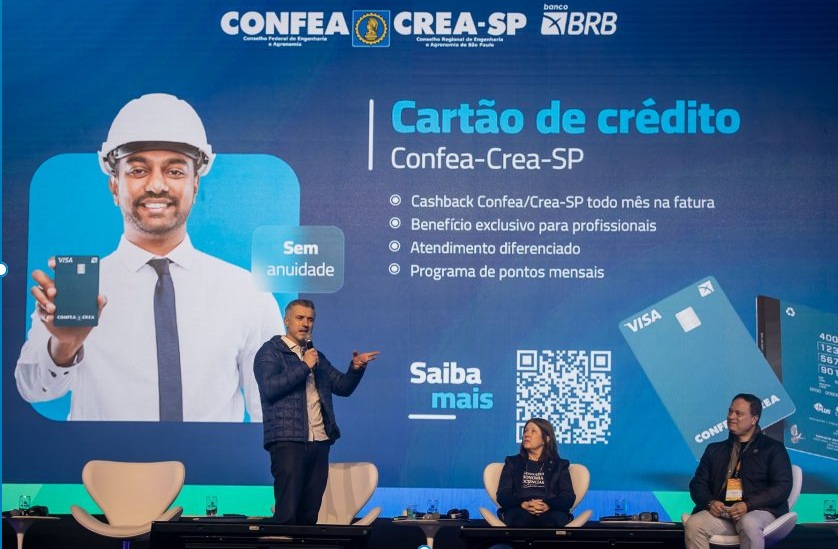 Outra novidade anunciada foi a parceria entre o Confea, o Crea-SP e o Banco BRB, para a emissão de um cartão exclusivo para os profissionais registrados que pode abater a anuidade do Conselho com cashback. “O pré-lançamento para São Paulo está sendo feito agora, mas a ideia é ampliar para todos os Creas”, disse Marchese.