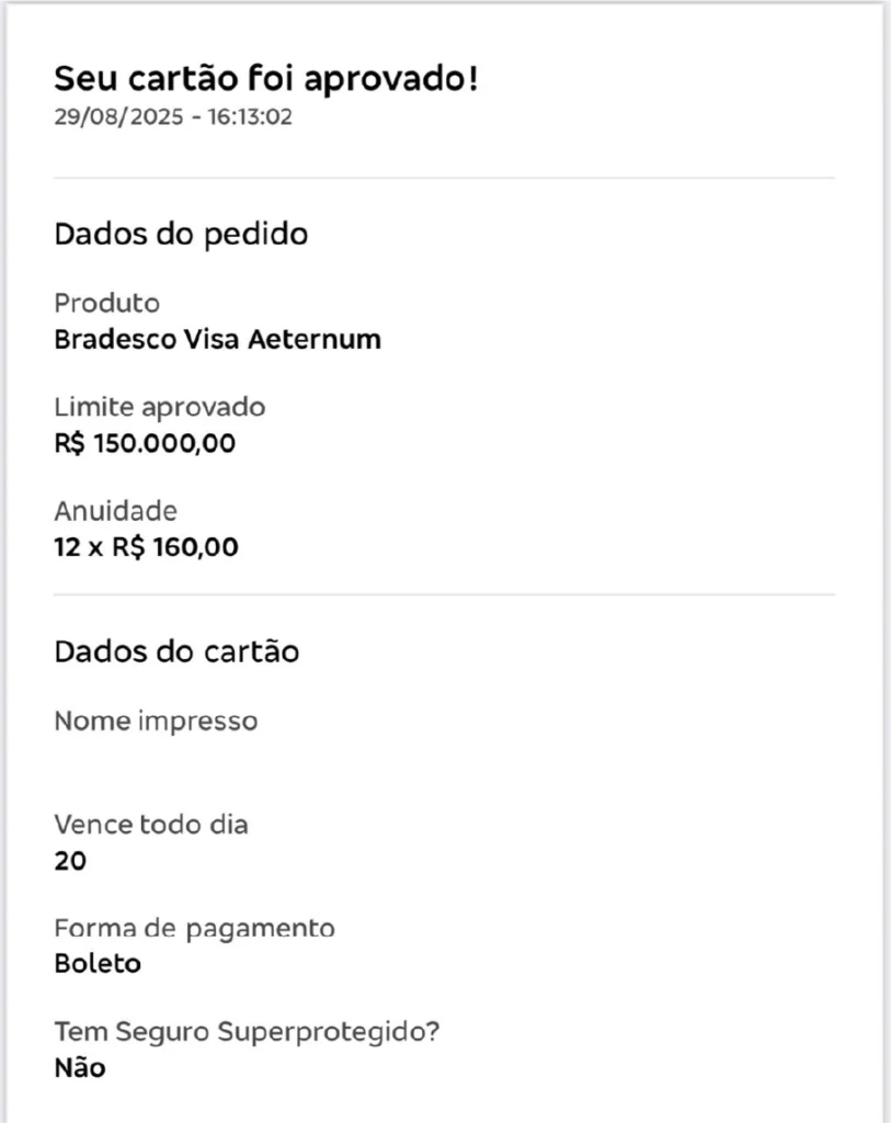 O que chama atenção é que, em muitos casos, quando o cliente não é aprovado para o Centurion, o banco concede o Aeternum, ambos reconhecidos como os cartões de maior prestígio da instituição e entre os melhores do mercado nacional.