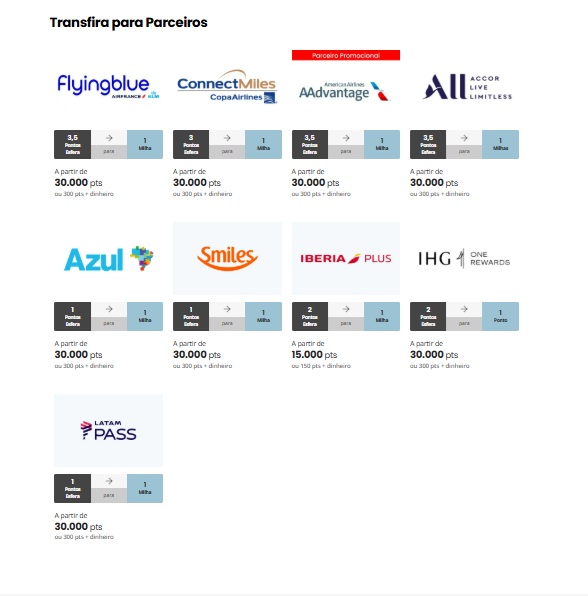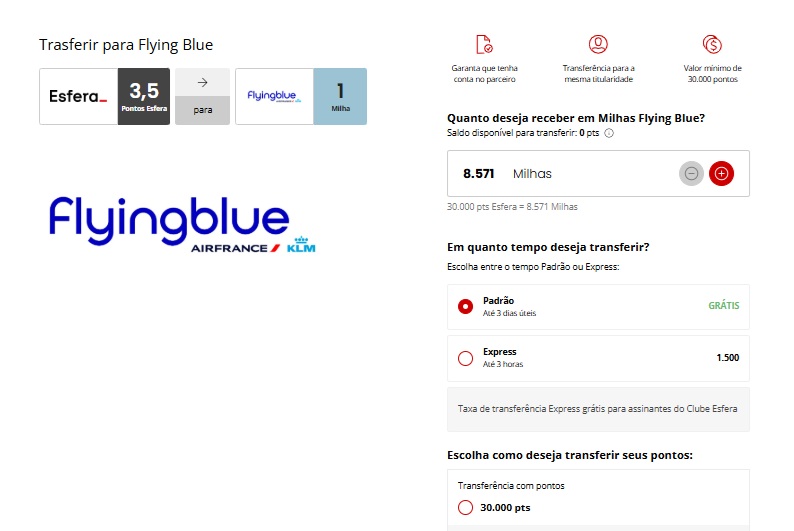 · Transferência mínima para o programa Flying Blue é de 30.000 pontos.