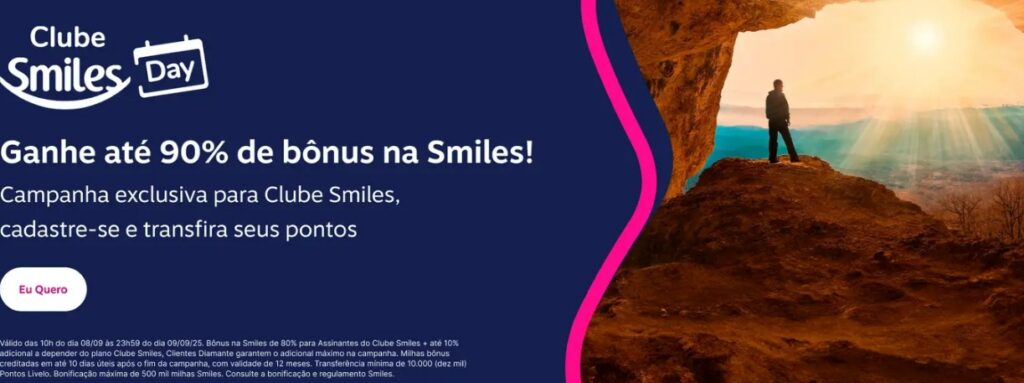 *Obrigatório o cadastro na promoção para recebimento dos pontos bônus na Smiles.