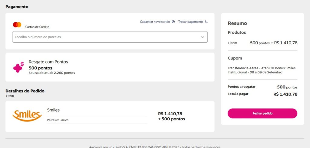 Ótima oportunidade! Milheiro Smiles por R$ 14,85 junto a Livelo no Carrinho.