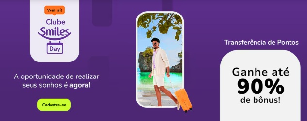 Ganhe até 90% de bônus e prepare-se para aproveitar as melhores promoções do Clube Smiles Day que vêm aí!