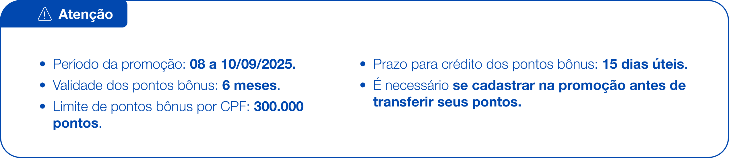 Após se cadastrar, transfira seus pontos até 10/09/2025.