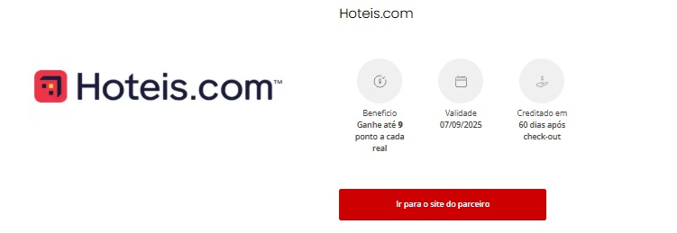 • Para uma melhor experiência e garantia do acúmulo de pontos, não feche o hotsite antes de finalizar a compra. Caso você saia da página, entre novamente pelo link disponível no botão “Ir para o site do parceiro”.