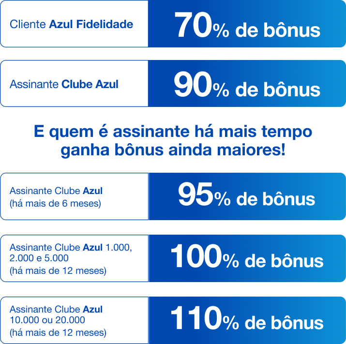 5. Para receber o bônus, o cliente deve se inscrever no Clube Azul, estar com o pagamento em dia, se inscrever na promoção, antes de realizar a transferência