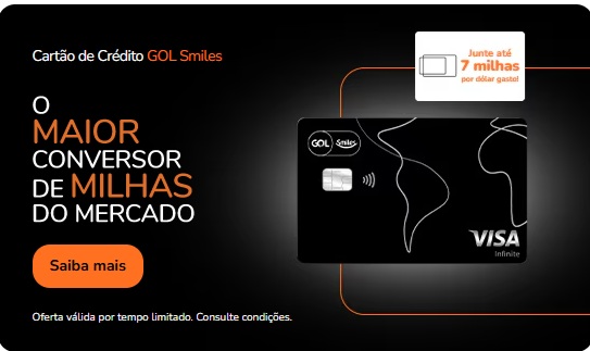Ganhe agora mesmo até 7 milhas por dólar gasto com seu Cartão de Crédito GOL Smiles Infinite!