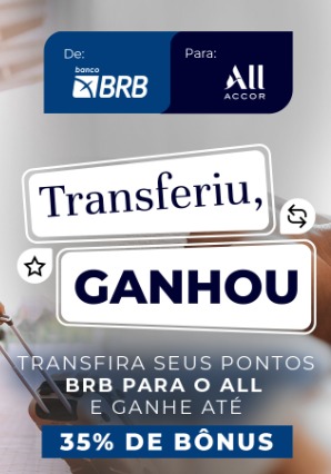 De 16 a 18 de setembro, transfira seus pontos BRB para o ALL Accor e ganhe até 35% de bônus em pontos Reward!