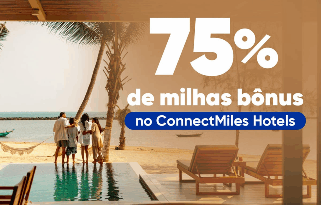 Reserve no ConnectMiles Hotels entre 17 de setembro e 10 de outubro de 2025 e receba 75% de milhas bônus em cada estadia