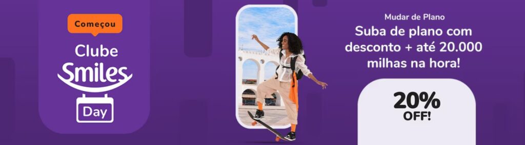 Receba até 20% OFF na mensalidade do Clube Smiles.