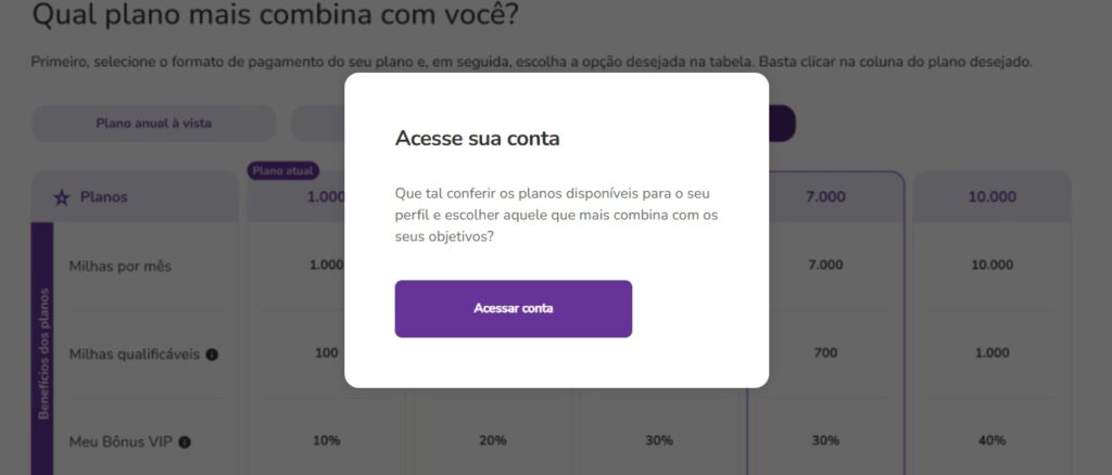 - Após os 12 meses, o cliente passará a receber somente as milhas do plano e pagará o valor integral do plano escolhido.