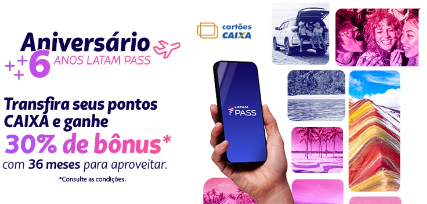 Transfira os pontos da Caixa para Latam Pass com 30% de bônus