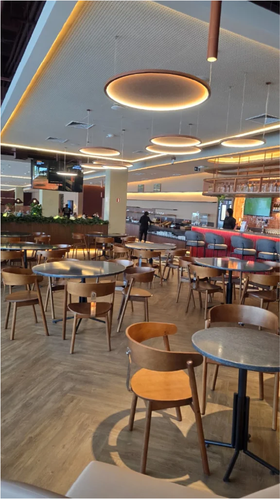 O espaço foi projetado para atender diferentes perfis de passageiros e proporcionar uma experiência completa antes do embarque.