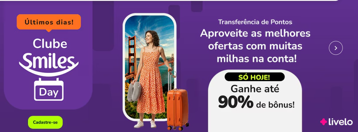 Ganhe até 90% de bônus e aproveite as melhores promoções do Clube Smiles Day!