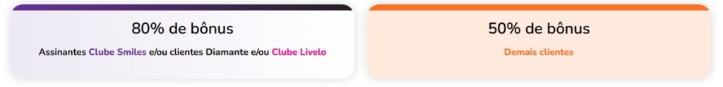 + até 10% de bônus adicional a depender do Plano Clube Smiles / Categoria Diamante:Saiba mais