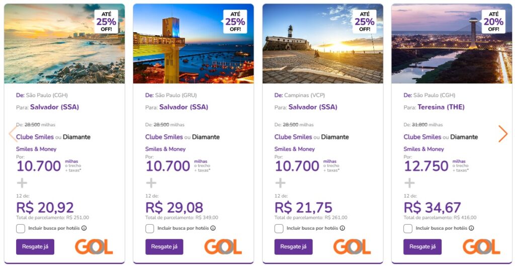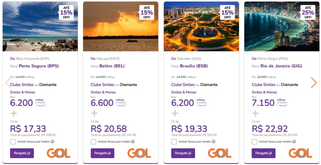 - Até 25% OFF: Para clientes Clube Smiles ou Diamante. Esta é a maior redução de preço e a forma mais vantajosa de resgatar.