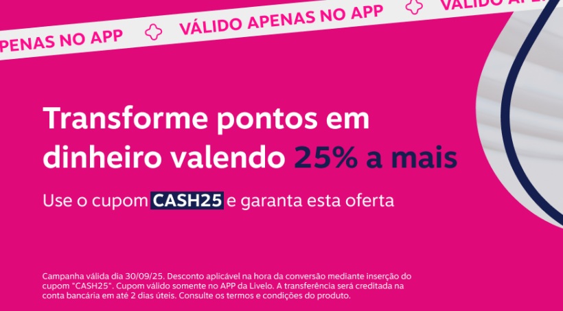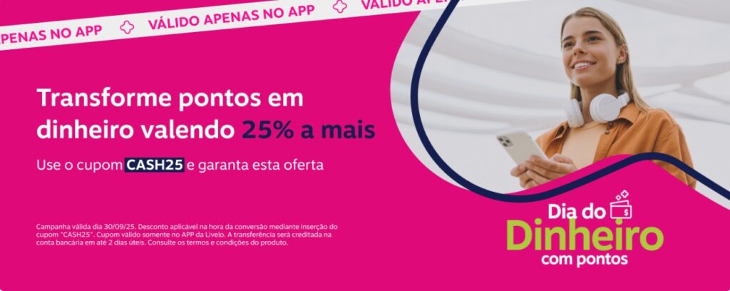 Só hoje 30/09! Transforme seu pontos Livelo em dinheiro valendo 25% a mais