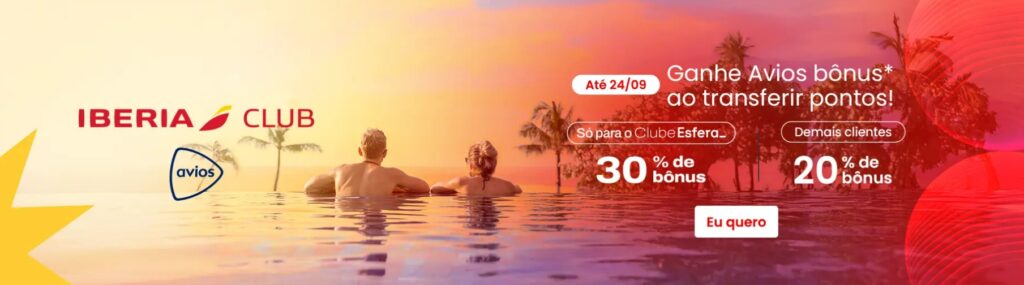 O Santander havia lançado a promoção transfira os pontos Esfera para Iberia Plus com até 30% de bônus para clientes do Clube Esfera. A promoção era do dia 22 a 24/09.